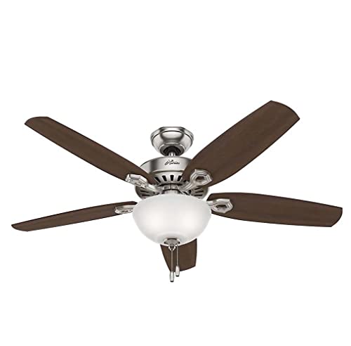reddit Hunter Fan Company 53090 Builder Deluxe Indoor Ceiling Fan with LED Light and Pull Chain Control, 52, Brushed Nickel Finish